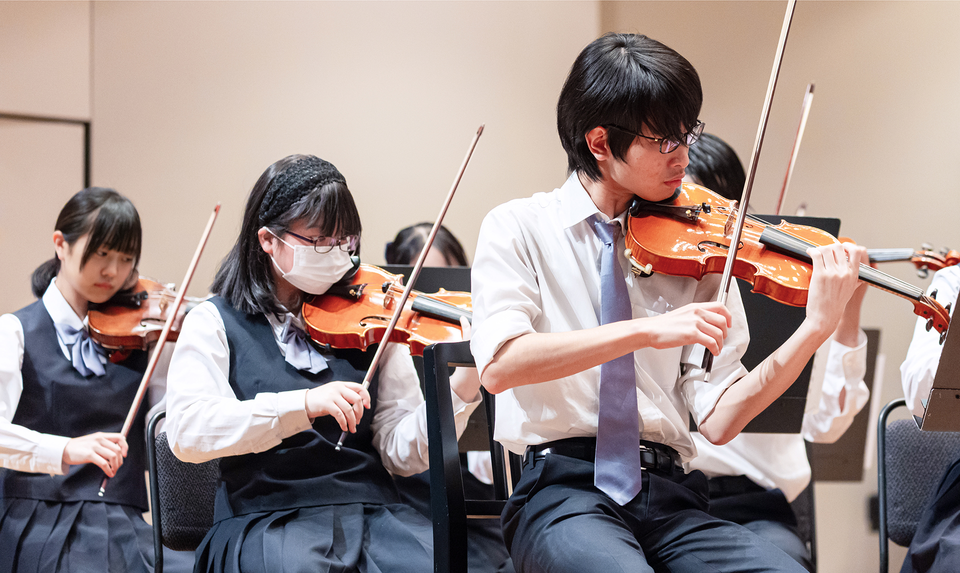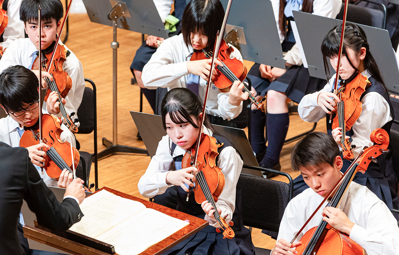 感情や情景を豊かに表現できる深い音色を持つ弦楽器で、ソロ演奏はもちろん、アンサンブルを通して協調性を育みながら個性を伸ばします。音楽家としても人としても、豊かな創造性を本校で磨き上げます。