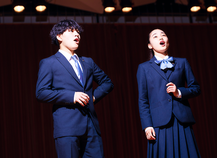 この学校では、僕の大好きな音楽を学ぶ時間が存分にあります。声楽のレッスンでは目標とする楽曲を深く追求し、声楽演習ではオペラの奥深さを学ぶことができます。ピアノも音楽理論の授業も大変充実しており、僕にとっては天国のような学校です。先生方は各分野の専門家でいらっしゃるため、疑問質問もすぐに解決できます。実演家(オペラもミュージカルも!)を目指す僕にとって、10代という大切な時期に東京音楽大学付属高等学校で学べていることは、計り知れないほど有意義なことだと強く感じています。